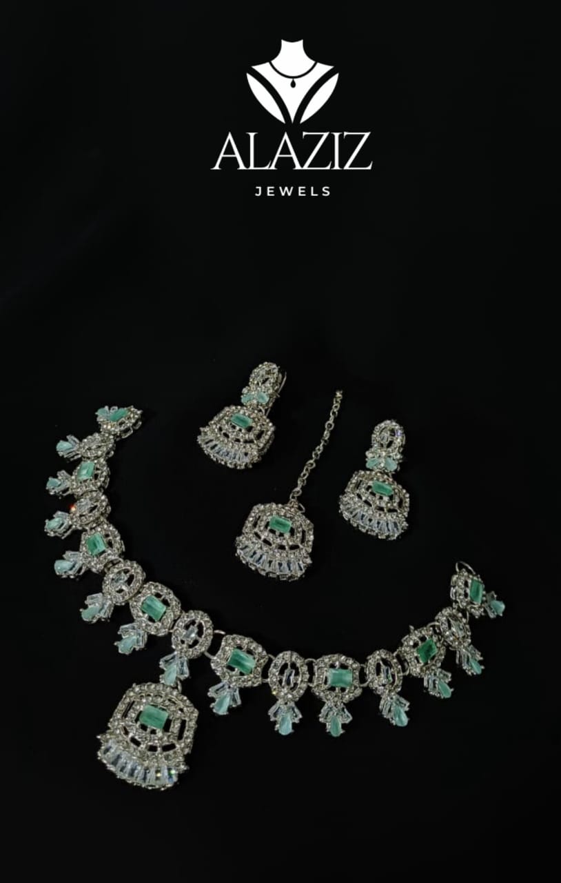 Elevate your style with AlAziz Jewels’ captivating necklace set, designed to make a statement. This Necklace is perfect piece for any occasion. With its unique blend of elegance, this beautiful piece adds a touch of sophistication to any outfit, perfect for letting your personality shine.