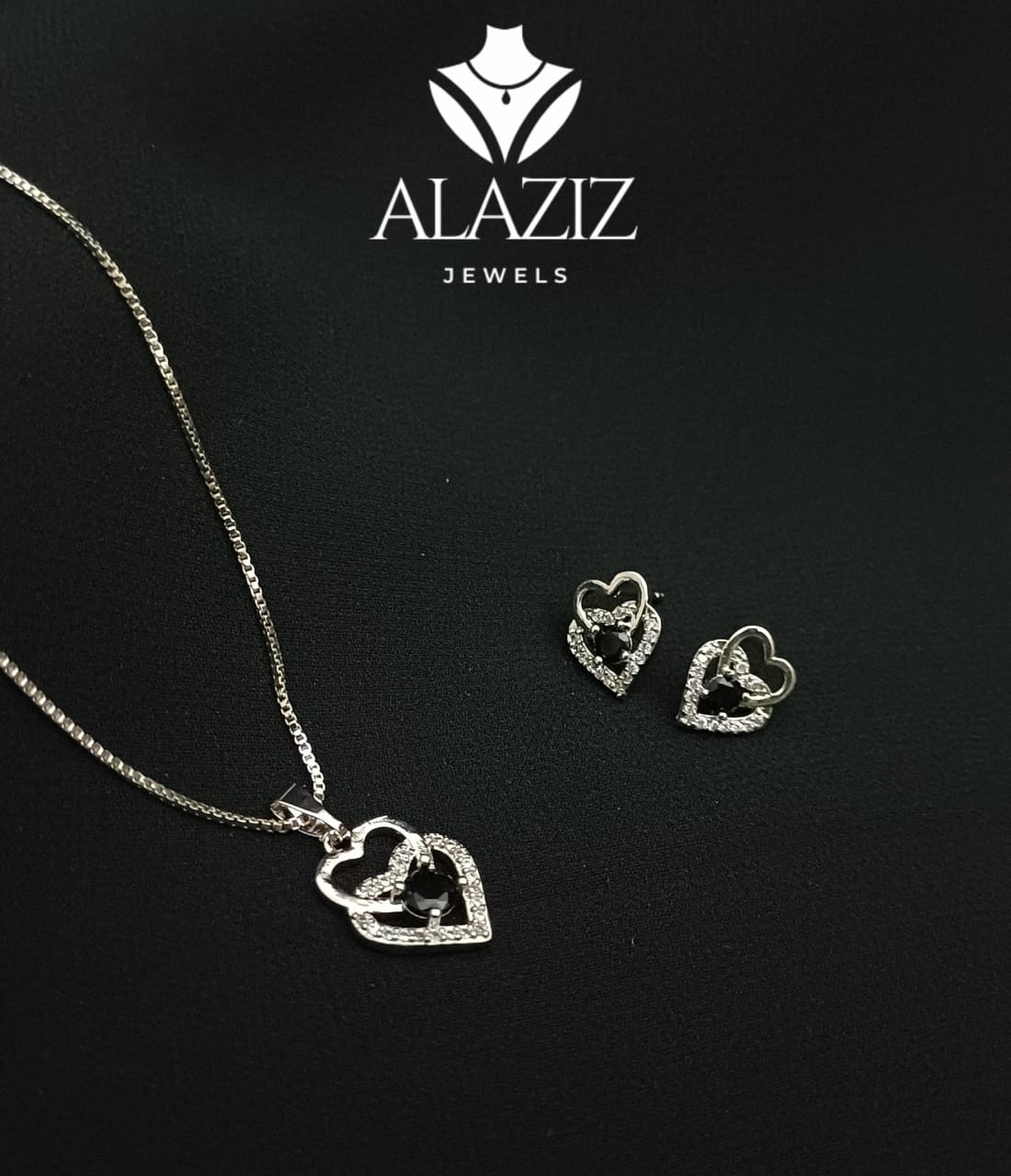 This romantic gold jewelry set features a necklace and matching earrings, each adorned with two interlocking hearts—one embellished with sparkling stones for added elegance. The coordinated design symbolizes love and unity, making it a perfect gift for special occasions or cherished moments.